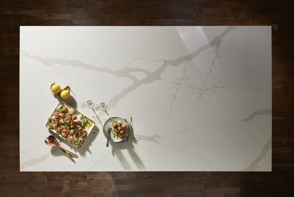 Pictured is Königstone’s Dolomite surface Quartz surfaces from Königstone contain a high percentage of one…