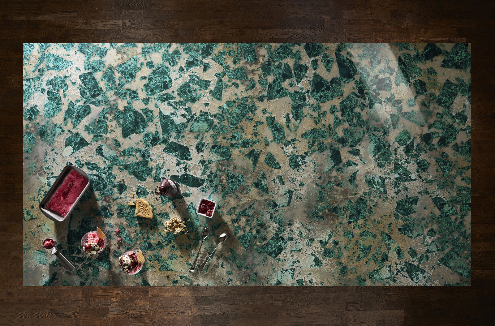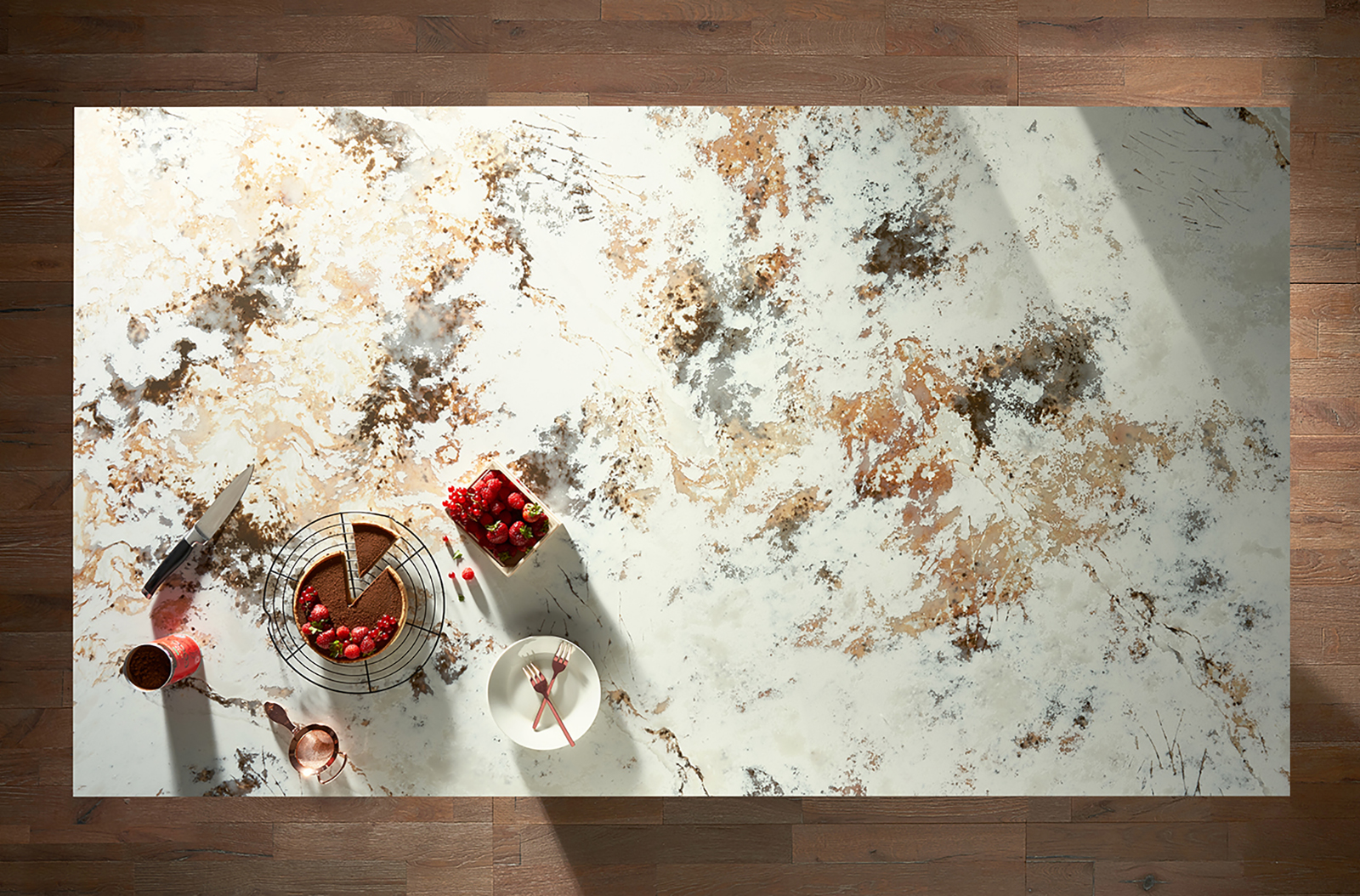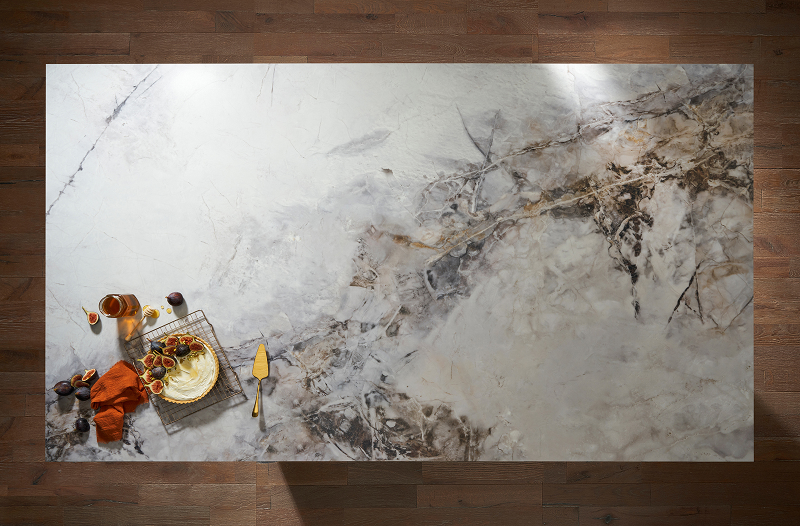 **These slabs feature an innovative printed design on the surface with a solid core colour which will be visible along exposed edges and drainer grooves.